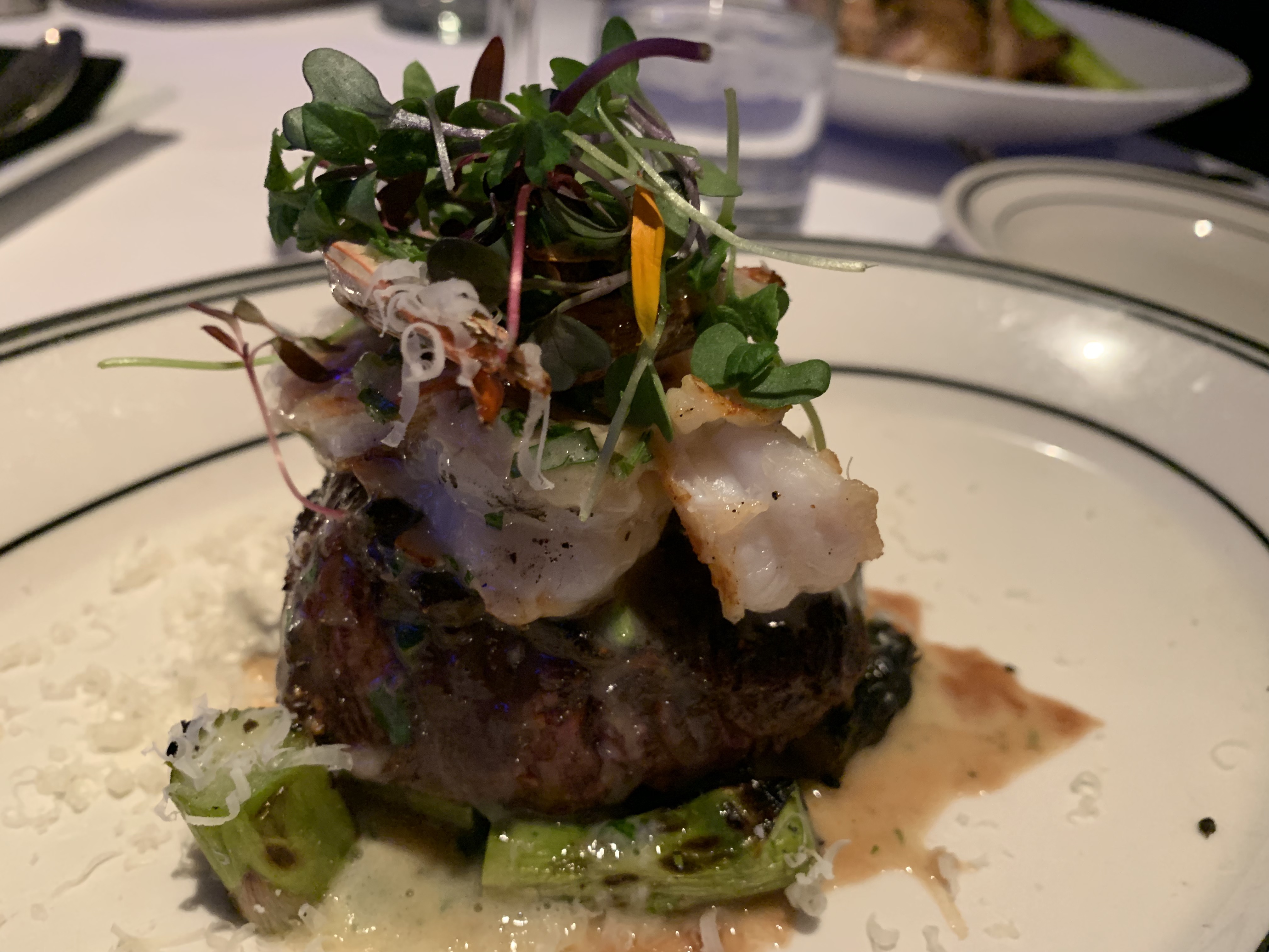 We were tired/Hungry, so we decided to get dinner. I wanted fancy seafood. The concierge sent us to Oceanaire. It was impressively good. They also made a ton of accommodations for Syd, like not cooking in butter and giving him really healthfully prepared chicken with asparagus since he was running soon and he’s a clean eater. I opted for the surf and turf which was beautiful!