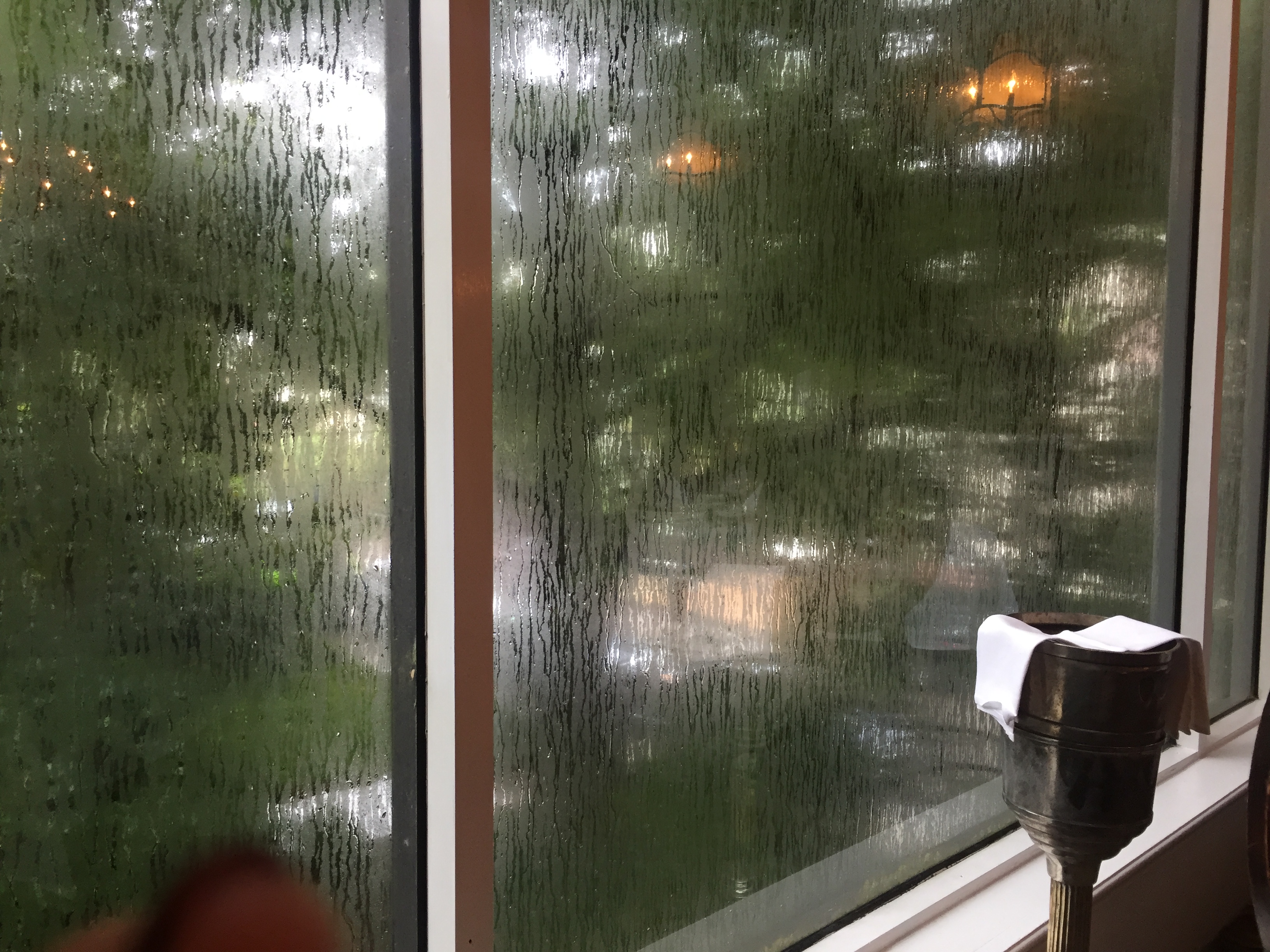 Syd got drenched in the downpour and had to change shirts for dinner. I tried to blow-dry the first one, but Syd has a thing about things being super dry! Ha ha. I have to restart the dryer like 3 times when I’m the one doing laundry for his socks to be ‘dry enough’ ha ha! This led to us totally matching!